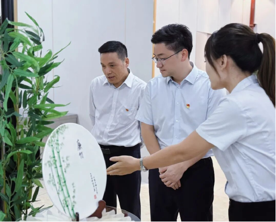 开展仪式上员工围观廉洁作品