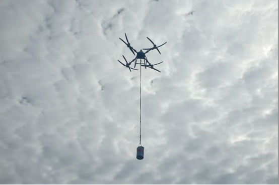 近日,在三峡基地公司投建的秭归县二水厂废水处理改造及管网完善工程——供水管网搭接项目现场,一桶桶盛满混凝土干料的铁桶被无人机平稳起吊,仅用20秒,便跨越50米水平距离,精准抵达垂直高差23米的供水管沟槽,完成供水管节的包封作业。这看似简单的吊运流程,实则是整个项目的关键突破。