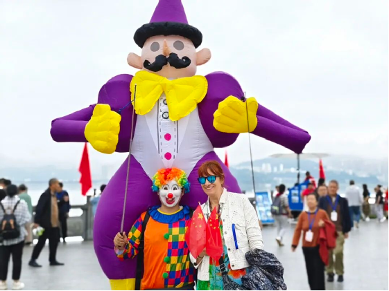 “三峡共此时诗画绘团圆”中秋主题活动中,特邀演员扮演的屈原、王昭君“穿越”现身,与游客趣味对诗,展开一场跨越时空的对话,让楚韵风华、家国情怀在互动中生动再现。彩绘老师笔下流淌的缤纷图案、小丑嘉年华的魔术表演带来阵阵欢笑,让游客在团圆喜庆的节日气氛中感受中华优秀传统文化的魅力。
